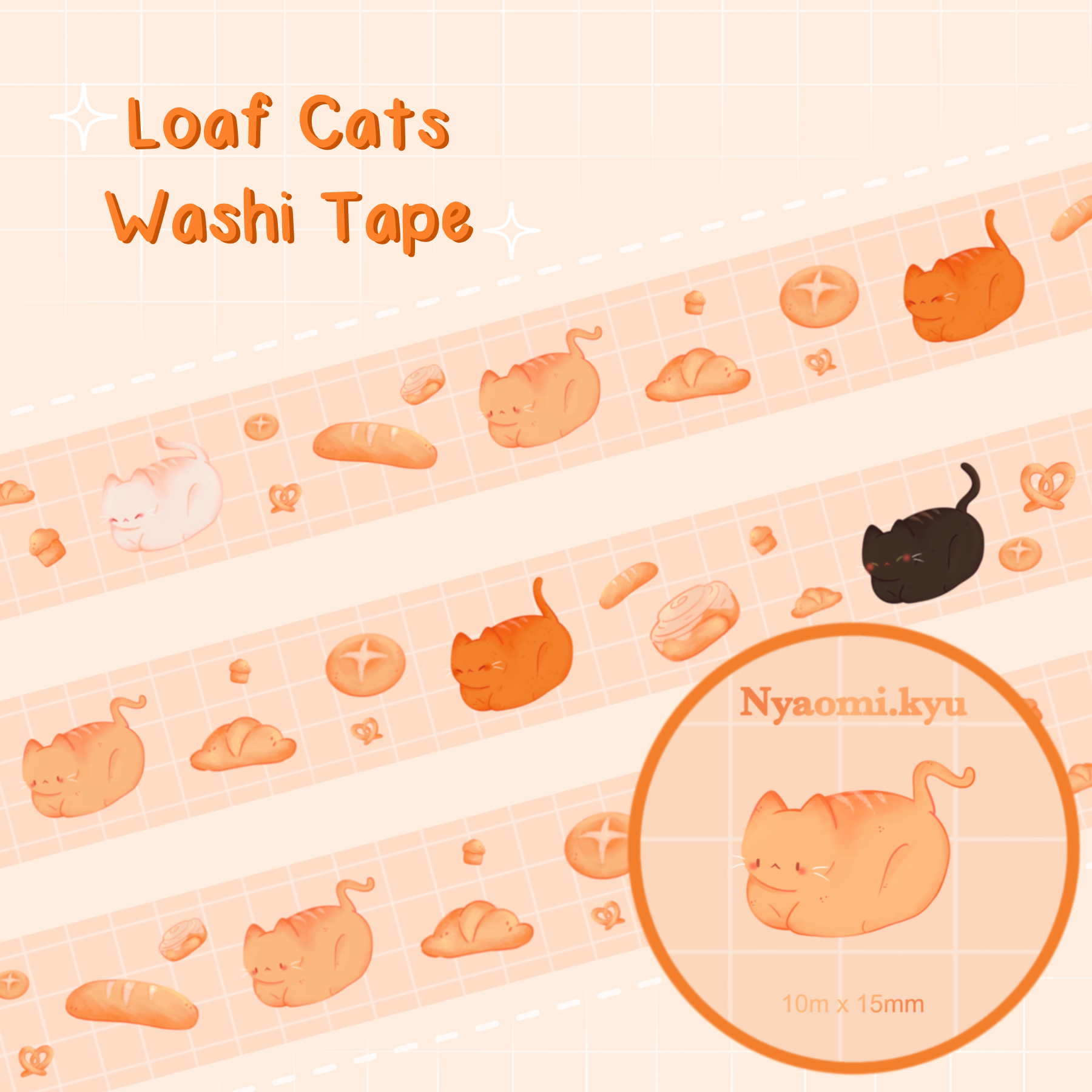 This cute decorative washi tape features cat loafs and a bread theme!